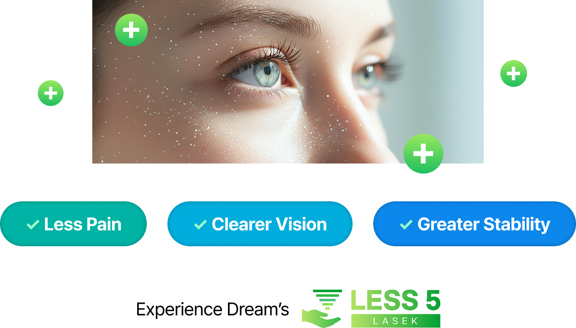 5The Best Surgery MethodFrom LASIK to LASEK and Monovision, Dream carefully selects the best surgical option for each patient and applies techniques to minimize corneal flap complications.